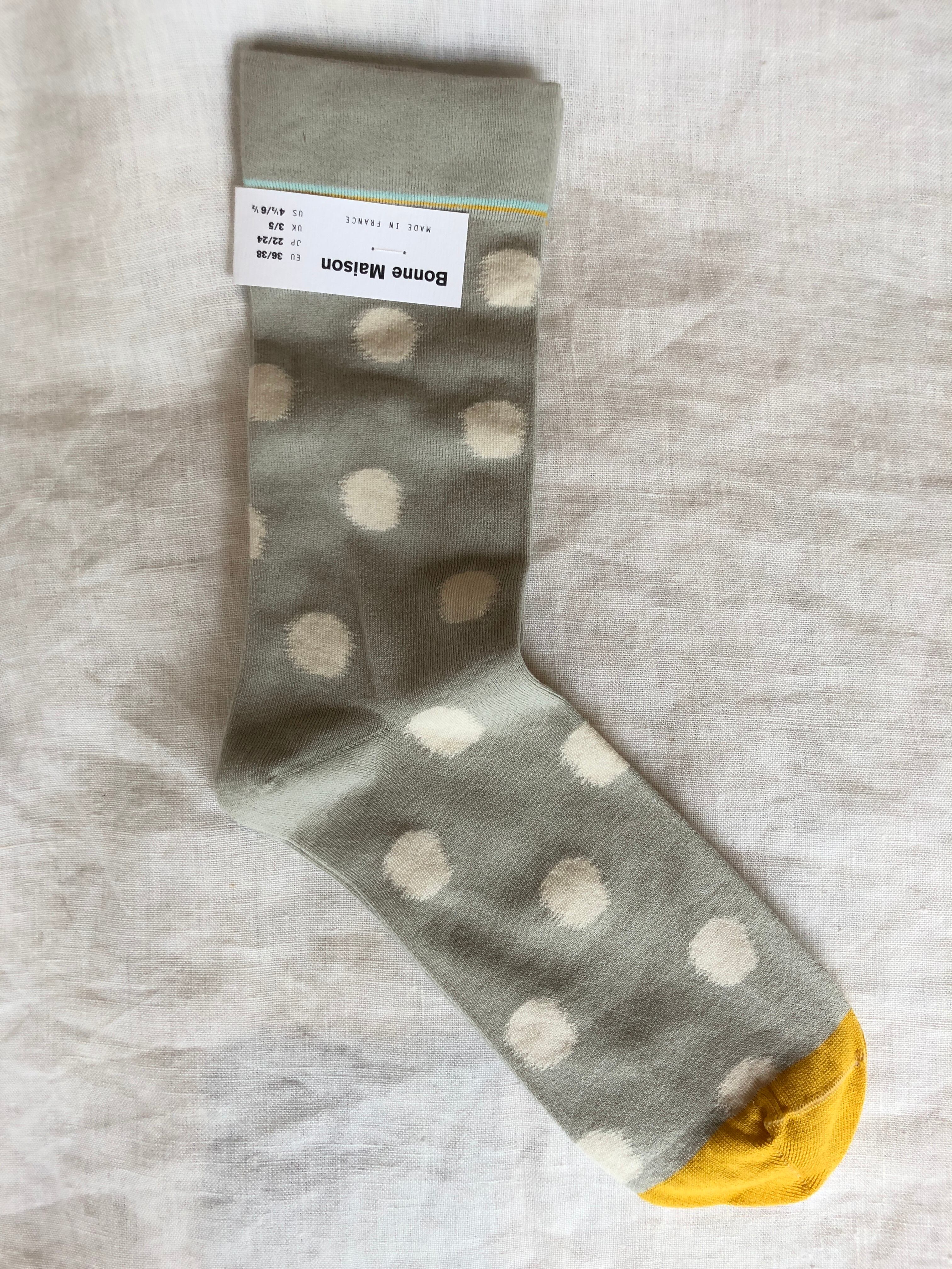 Bonne Maison くつした 青磁色のドット